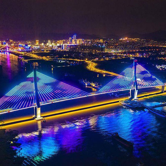 橋梁全彩LED燈光是通過(guò)安裝帶DMX512控制芯片的燈具,再通過(guò)電腦、控制器進(jìn)行編程,使燈光能按程序展現(xiàn)不同效果,常用效果有炫彩、跑馬、漸變、像素屏。應(yīng)用場(chǎng)景:橋梁亮化工···